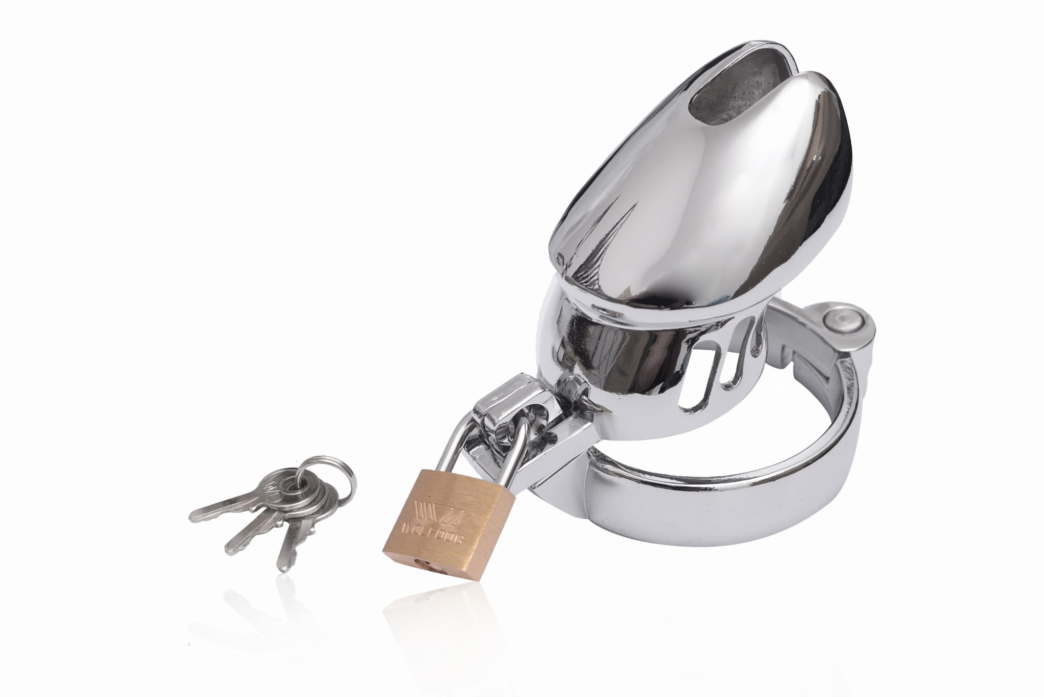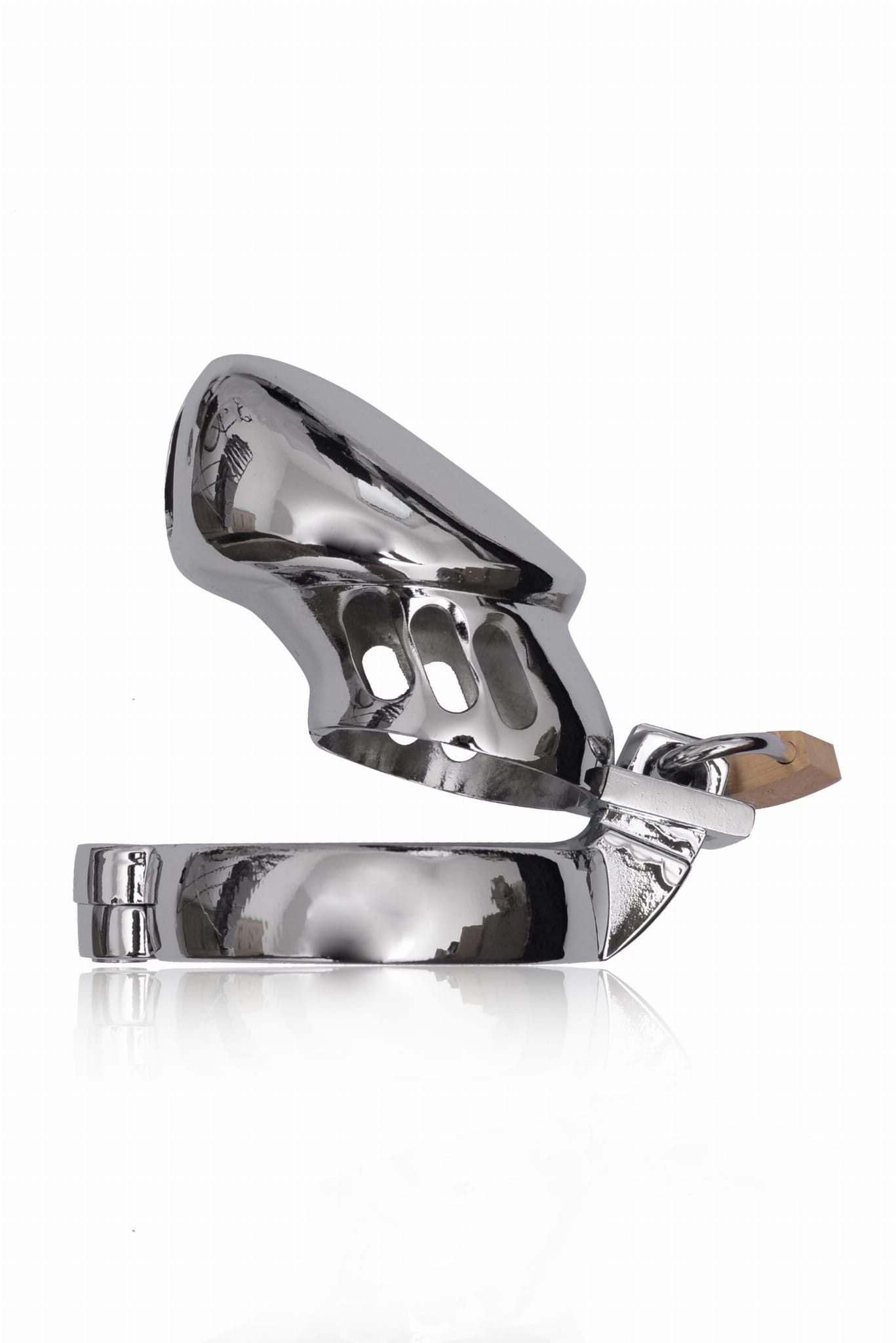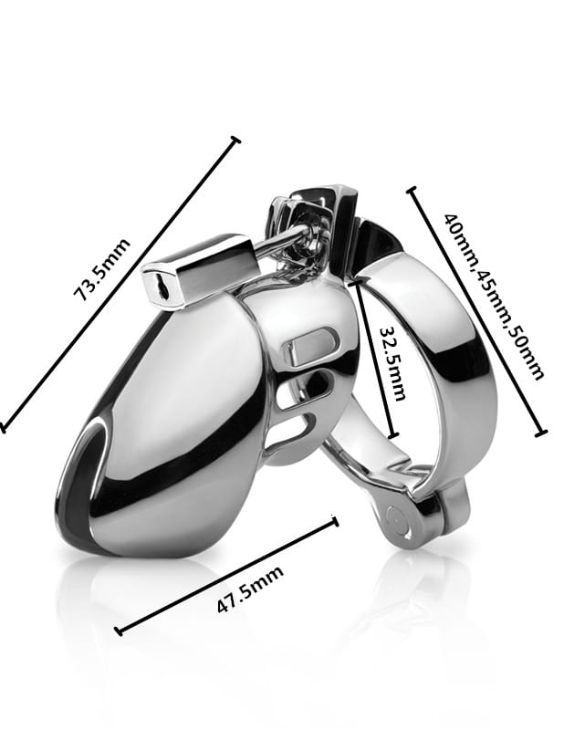 Nowoczesny i elegancki pas cnoty wykonany ze stali nierdzewnej, zamykany na małą kłódeczkę Dokładnie odwzorowuje linię penisa, a pochylenie ku dołowi czyni urządzenie niewidoczne pod ubraniem. Męski pas cnoty posiada otwory z przodu i po bokach, dzięki czemu zapewnia komfort i pozwala na utrzymanie higieny. To innowacyjny produkt, który pozwala na komfortowe zniewolenie, ideał dla fanów BDSM oraz osób, które chciałyby tego dopiero spróbować.