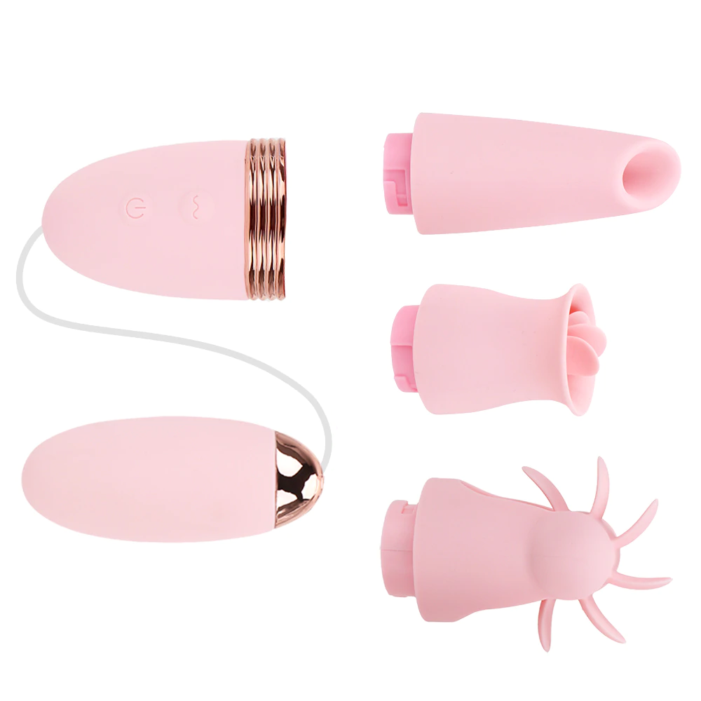 Niesamowity wielofunkcyjny wibrator do jednoczesnej stymulacji pochwy i łechtaczki. Ten innowacyjny gadżet erotyczny łączy w sobie dwa różne urządzenia - wibrujące jajeczko i masażer łechtaczki. Wibrator został wykonany z silikonu medycznego, dzięki czemu jest bezpieczny w kontakcie ze skórą i przyjemny w dotyku, a także wodoodporny. Jajeczko dopochwowe zostało wyposażone w silniczek wibracyjny i aż 10 różnych trybów wibracji. Stymulator łechtaczki posiada aż 3 różne wymienne końcówki, a każda z nich to aż 6 różnych programów stymulacji. Dzięki temu wibratorowi będziecie mogli poczuć przyjemność podobną do pieszczot oralnych - ssanie, lizanie oraz oczywiście wibracje. Urządzenie posiada wbudowany akumulator ładowany za pomocą kabla USB. Sterowanie odbywa się za pomocą panelu na stymulatorze łechtaczki: przycisk włączenia należy przytrzymać ok. 3 sekund, aby włączyć lub wyłączyć urządzenie, a jego krótkie kliknięcie zmienia tryb wibracji jajeczka. Przycisk z falą zmienia 6 różnych programów końcówki masażera łechtaczki.