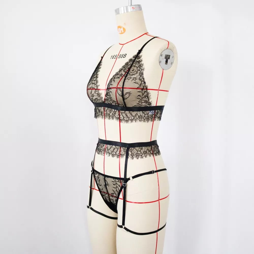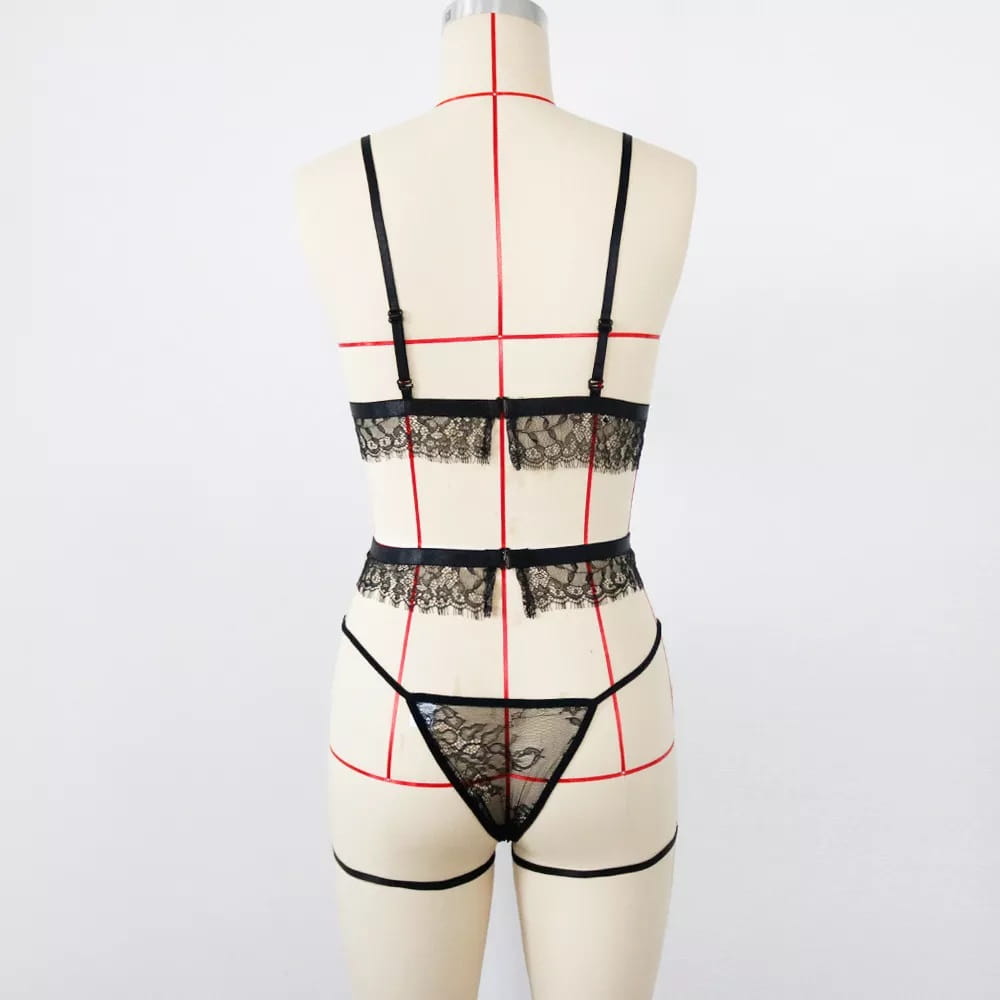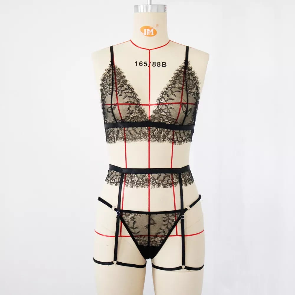 Seksowny koronkowy strój - komplet bielizny erotycznej to wyjątkowy produkt stworzony z myślą o kobietach. Jeśli chcesz zaskoczyć swojego partnera i zrobić mu niespodziankę, wypróbuj naszą propozycję - zestaw: seksowny stanik + wycięte majteczki + pas do pończoch.