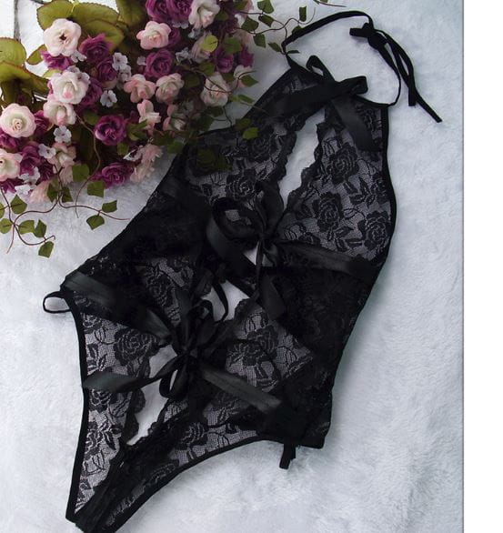 Czarne, zmysłowe body z koronką, które hipnotyzuje swoją delikatnością i wyrafinowaną elegancją. Uroku dodają subtelne kokardki, misternie umiejscowione przy szyi, pod linią biustu oraz w talii, a także paseczki krzyżujące się na plecach. Body ozdobione są satynowymi wstążkami, które nie tylko dodają uroku, ale również pozwalają na idealne dopasowanie do sylwetki. Zmysłowo odsłonięte plecy i fantazyjne wycięcia na brzuchu przyciągają uwagę i rozbudzają wyobraźnię. Przyjemna w dotyku, delikatna koronka miękko otula ciało, podkreślając kobiecą naturę. To body sprawi, że każda kobieta poczuje się absolutnie wyjątkowo!