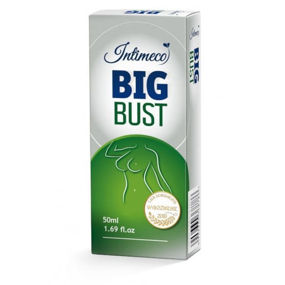 INTIMECO BIG BUST 50 ml - to innowacyjny krem dla kobiet, które chcą poprawić kondycję swoich piersi. Naturalne składniki połączone z osiągnięciami medycyny tworzą rewolucyjny skład tego kosmetyku, dzięki czemu szybko i bezpiecznie można powiększyć rozmiar biustu. Silnie rozszerza naczynia krwionośne - naciąga skórę. Poprawia jędrność i zwiększa rozmiar piersi. Ponadto idealnie nawilża i tonizuje ciało, usuwa drobne przebarwienia, poprawia spoistość skóry. To wyjątkowy produkt stworzony dla każdej kobiety, która nie jest zadowolona z rozmiaru lub kondycji swoich piersi. Zauważalne efekty pojawiają się już po 4 tygodniach regularnego stosowania kremu - na tyle właśnie wystarcza jedno opakowanie.