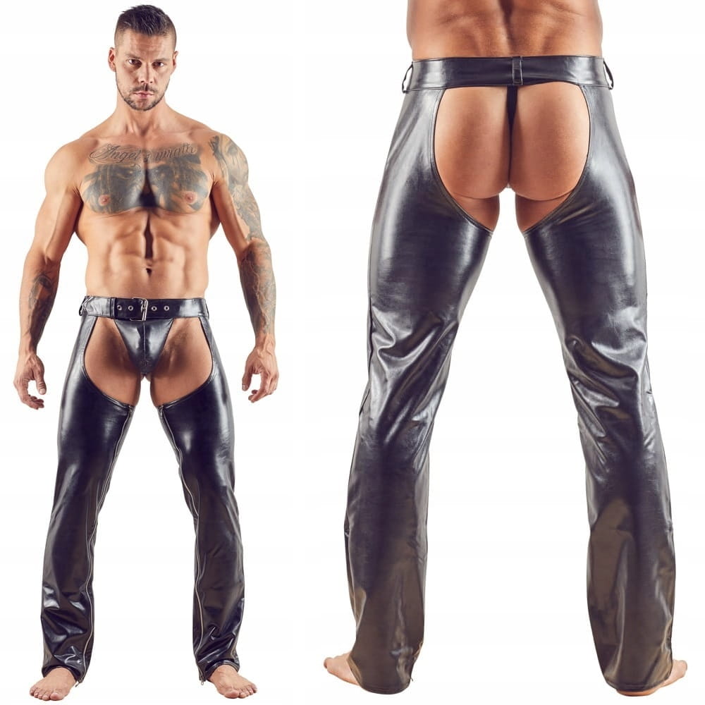 Zamki błyskawiczne po wewnętrznej stronie nogawek nie tylko dodają pazura, ale również zapewniają pełen komfort noszenia. Dodatkowym atutem są dopasowane stringi, które stanowią zmysłowe uzupełnienie stroju. Elastyczna imitacja skóry idealnie przylega do ciała, podkreślając męską sylwetkę i zapewniając wygodę przez cały wieczór.