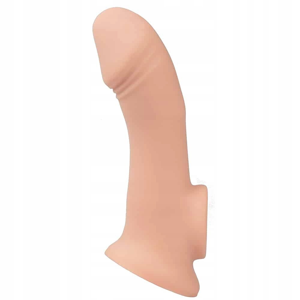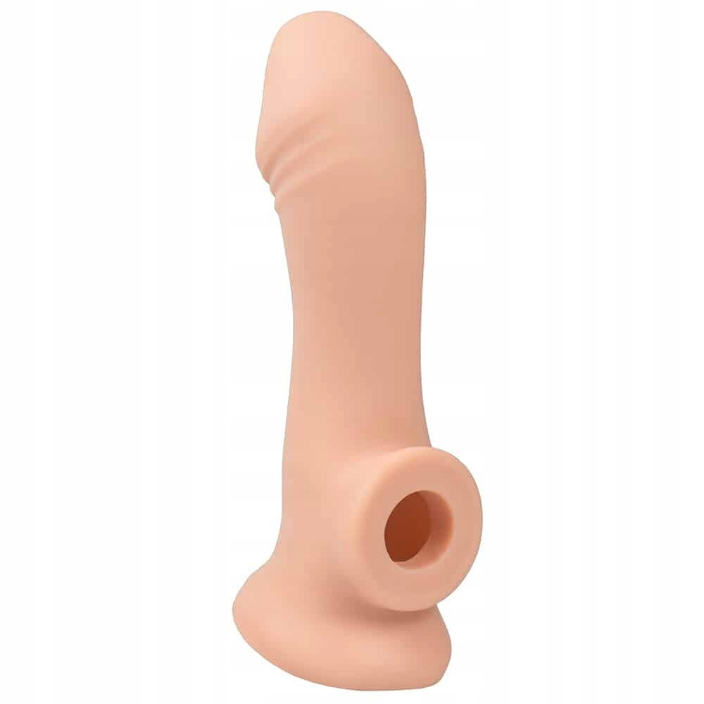 Realistyczna nakładka na penisa i jądra to cudowny gadżet erotyczny, który pozwoli na natychmiastowe powiększenie penisa aż o 5 centymetrów! W jednej chwili zwiększysz swój rozmiar i zaimponujesz ukochanej kobiecie! Uchwyt na jądra sprawia, że nakładka trzyma się stabilnie na swoim miejscu, nie spada ani się nie przesuwa. Przedłużka penisa została wykonana z silikonu medycznego, co sprawia, że jest aksamitna w dotyku, bezpieczna w kontakcie ze skórą i łatwa do utrzymania w czystości. Aż 5 centymetrów więcej to zdecydowana różnica, która z pewnością będzie odczuwalna. Natychmiastowe powiększenie penisa to marzenie wielu mężczyzn, wypróbuj przedłużającą nasadkę na penisa i spełnij swoje fantazje!