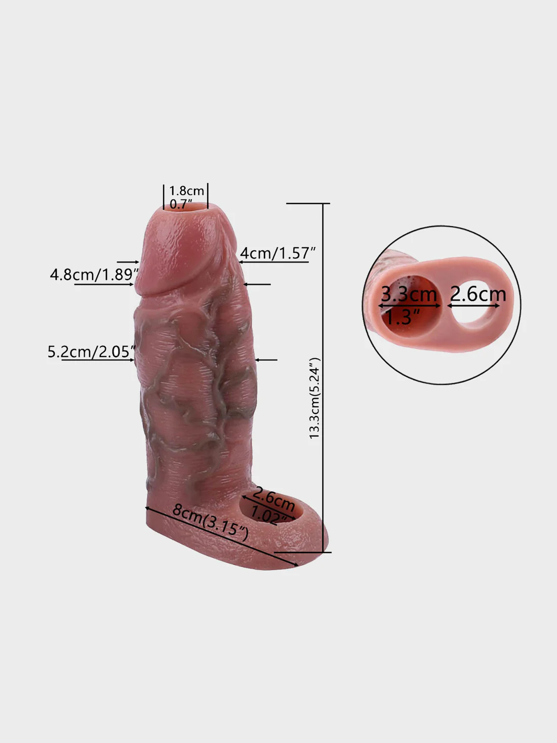 Nakładka wykonana jest z wysokiej jakości, elastycznego materiału przyjaznego dla ciała, który doskonale dopasowuje się do anatomii. Gładka, a jednocześnie realistyczna powierzchnia sprawia, że produkt jest komfortowy zarówno dla użytkownika, jak i partnerki lub partnera.