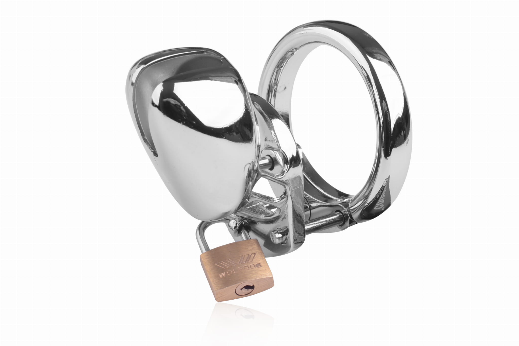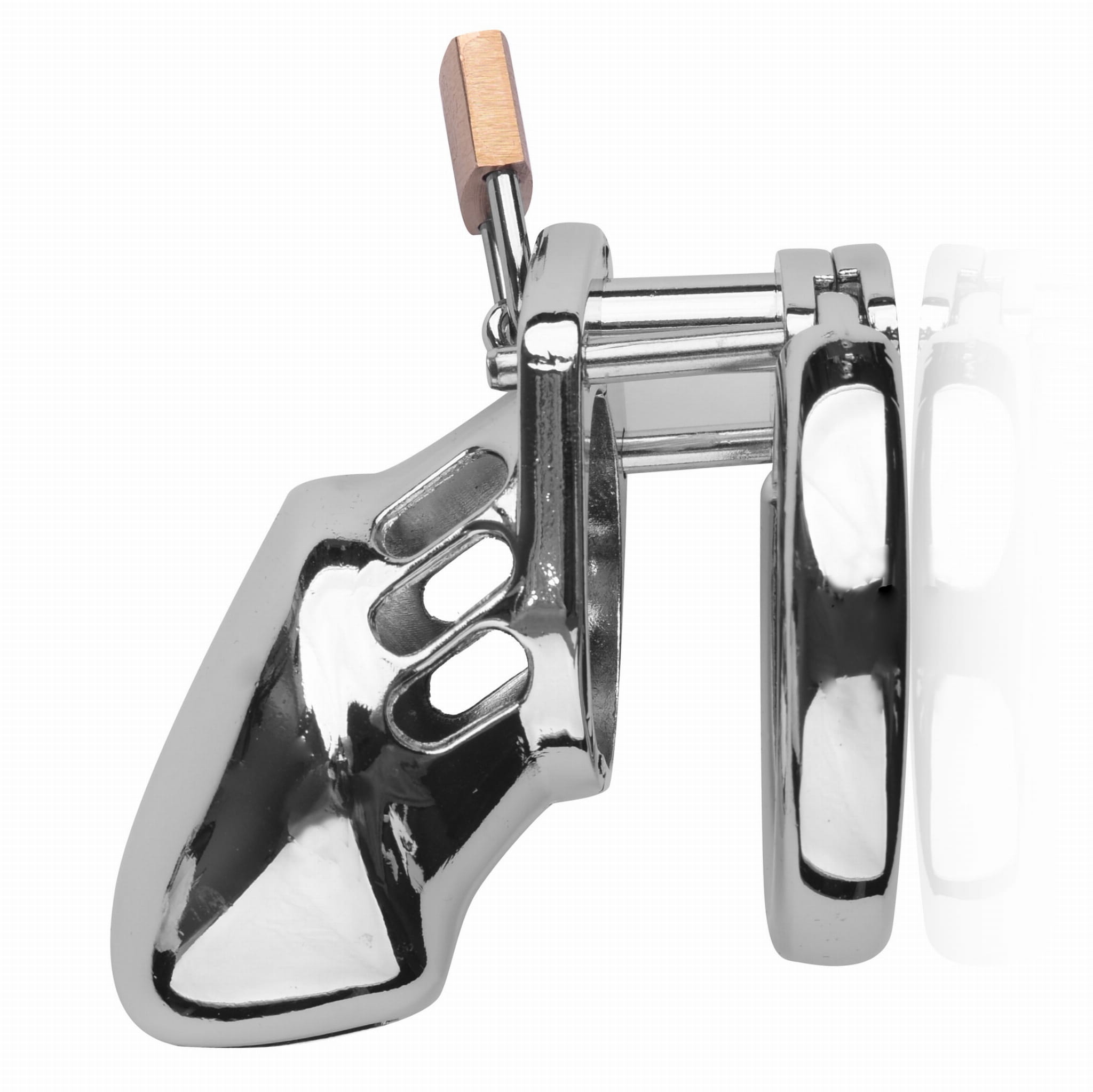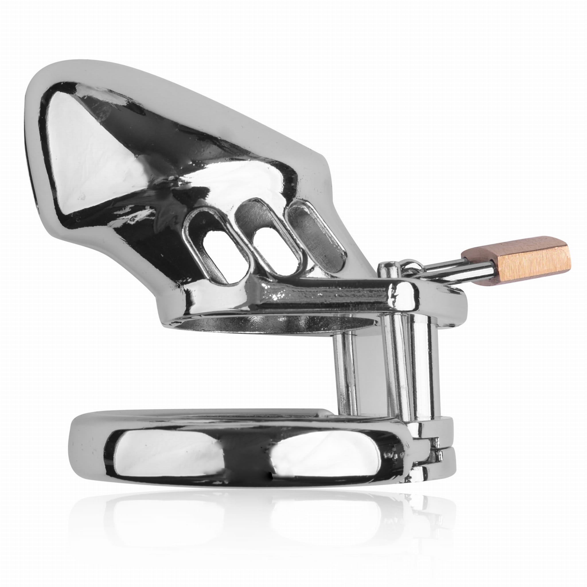 Stalowy męski pas cnoty z krótką klatką na penisa sprawdzi się idealnie u wielbicieli zniewolenia. Miłośnicy zabaw w klimatach BDSM na pewno będą z niego zadowoleni. Wysoka jakość i staranność wykonania, solidna i przemyślana konstrukcja, adekwatna cena - to wszystko zachęca do kupna tego właśnie produktu! Pas cnoty BDSM posiada otwory na końcu klatki i po bokach, co ułatwia zachowanie higieny i zapewnia przepływ powietrza. Pas cnoty łączy się razem z grubym pierścieniem na jądra i zapina za pomocą małej kłódki. Naturalne pochylenie klatki na penisa w dół czyni urządzenie niewidoczne pod ubraniem i komfortowe w użytkowaniu.
