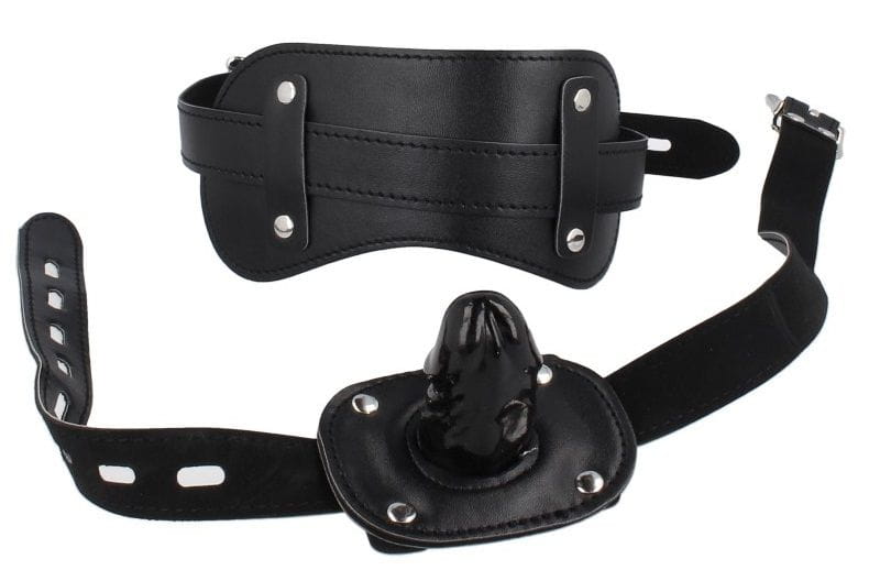 Bardzo perwersyjna maska erotyczna bdsm wykonana z grubej skóry ekologicznej najwyższej jakości. Maska z tyłu głowy jest sznurowana, dzięki czemu dopasujesz rozmiar idealny dla siebie. Ponad to posiada zapinane pasy, które posiadają dużą regulacje rozmiaru. W zestawie znajdują się dwa dodatkowe elementy- knebel w kształcie penisa o długości 5 cm. Jest bardzo realistyczny i wygląda jak prawdziwy członek. Został wykonany z wysokiej jakości masy żelowej. Możemy umieścić go w specjalnym otworze na erotycznej masce bdsm lub też używać osobno. Drugim elementem jest skórzana opaska na oczy, która zasłania całkowicie możliwość widzenia. Również istnieje możliwość odpięcia jej i samodzielnego używania.