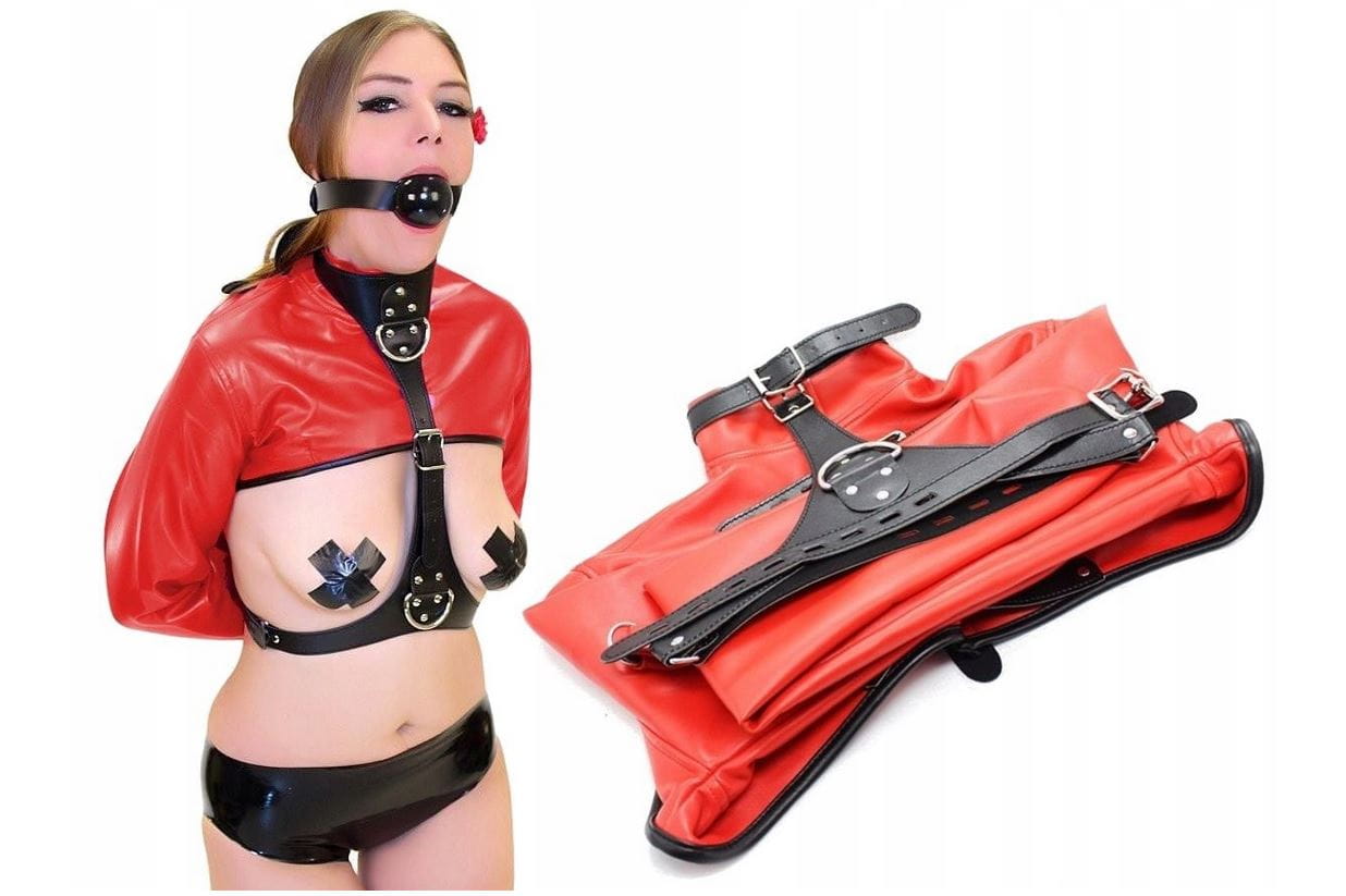Solidny kaftan bezpieczeństwa, który pozwoli na skrępowanie nawet najbardziej drapieżnej partnerki. Kaftan bezpieczeństwa do BDSM w kolorze czerwonym wykonany ze skóry ekologicznej to produkt najwyższej jakości, wytrzymały i solidny, który jednocześnie jest przyjemny w dotyku i pięknie się prezentuje. Został zaprojektowany tak, by kobieta, nawet będąc zniewolona, wciąż wyglądała zjawiskowo. Ten efekt został osiągnięty dzięki odsłoniętym piersiom, które od dołu definiuje skórzana uprząż, a od góry przyciąga do nich wzrok czerwień stroju. Zniewolenie, jakie oferuje kaftan bezpieczeństwa do krępowania, to skrępowane ręce i górna część tułowia. Oprócz tego na kombinezonie znajdują się kółeczka, do których można przypiąć smycz i kontynuować zabawy w dominację. Kaftan BDSM posiada regulowane pasy, dzięki którym można regulować jego wielkość.