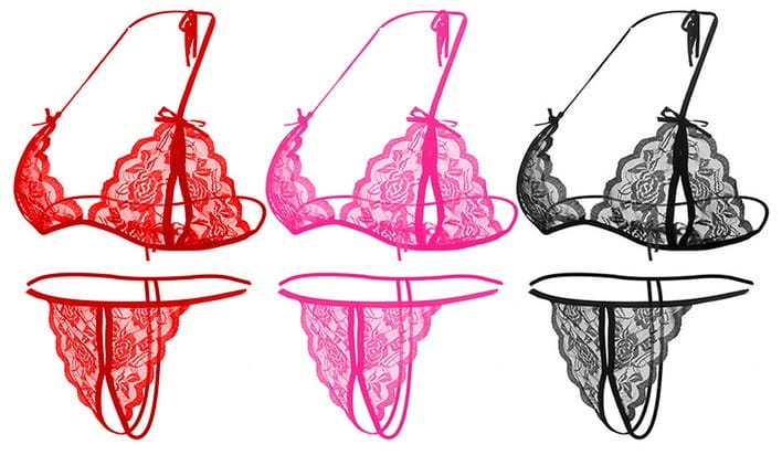 Komplet seksownej bielizny składa się z koronkowego stanika oraz skąpych majteczek. To idealny zestaw zarówno na randkę, jak i do sypialni. Biustonosz jest wiązany z tyłu, dzięki czemu można go idealnie dopasować do swoich preferencji. Koronkowy materiał pięknie leży na ciele i podkreśla kobiece kształty. Bielizna erotyczna jest dostępna w trzech kolorach - klasycznej czerni, słodkim różu oraz podniecającej czerwieni - wybierz to, co bardziej do Ciebie pasuje! Zamów już dziś swój komplet seksownej bielizny i zadbaj o dobrą atmosferę w sypialni!