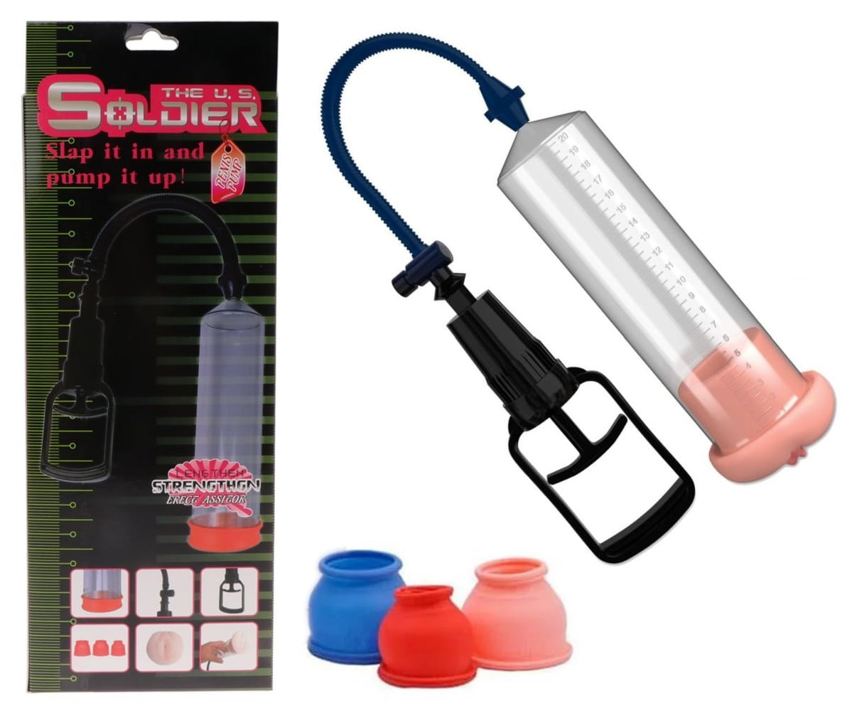 W skład zestawu wchodzą: pompka do powiększania penisa z automatem pompującym, uszczelki silikonowe różnej wielkości (3 sztuki), pochwa z wysokiej jakości cyberskóry.