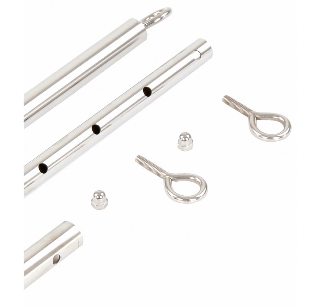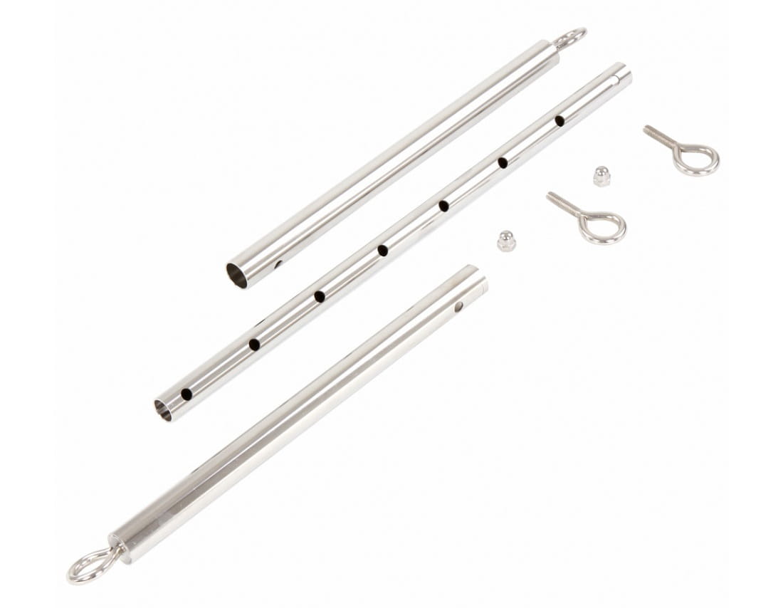 Stalowy drążek do montowania kajdan z dużą regulacją - dzięki temu wyjątkowemu gadżetowi erotycznemu będziesz mógł stworzyć swoją idealną rozpórkę! Długość drążka można ustawić co 5 centymetrów między 55 a 85 cm. Po zamontowaniu kajdan (brak w zestawie) rozpórka idealnie nadaje się do unieruchomienia rąk i nóg. Drążek jest mocny i stabilny, gwarantuje trwałość na lata. Świetnie sprawdzi się jako uzupełnienie kolekcji gadżetów erotycznych, szczególnie u miłośników zabaw BDSM. To najwyższej jakości produkt, który jest bardzo wytrzymały oraz funkcjonalny. Regulowana długość pozwala na dopasowanie rozpórki do własnych potrzeb.