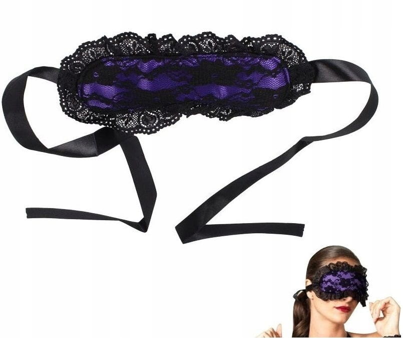 Bardzo seksowna i zmysłowa wiązana maska erotyczna na oczy. Nada twarzy niebanalny wygląd. Maska ozdobiona jest koronką i wiązana czarną wstążką. Głęboki fioletowy kolor pięknie komponuje się z koronkowym wykończeniem i dodaje uroku.