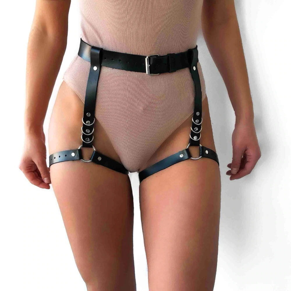 Jeśli pragniesz odnaleźć coś, co urozmaici Wasze życie łóżkowe, a jednocześnie będzie po prostu pięknym elementem garderoby, ta skórzana uprząż na uda będzie idealnym wyborem. Bielizna erotyczna potrafi całkowicie odmienić seksualną energię w związku, dlatego warto wypróbować seksowną uprząż na uda, by wprowadzić coś nowego do sypialni. Ta uprząż została wykonana z najwyższej jakości skóry ekologicznej, z regulowanymi paskami, które pozwolą na dopasowanie bielizny BDSM do każdej figury.
