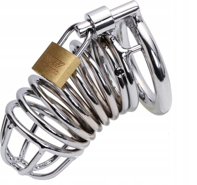 Solidny stalowy męski pas cnoty pozwoli zniewolić mężczyznę i uwięzić jego penisa, zamykając go na kłódkę. Tylko za pomocą kluczyka będzie można otworzyć zamek i uwolnić się ze stalowej klatki. Ten stalowy pas cnoty to jeden z najczęściej wybieranych gadżetów z kategorii akcesoriów BDSM. W zestawie znajduje się klatka na penisa, ring zakładany za jądra oraz kłódeczka z kluczykami. Obręcz mocująca pas cnoty do jąder jest dostępna w trzech różnych rozmiarach, dzięki czemu można dopasować jej wielkość do własnych preferencji. Męski pas cnoty posiada naturalny, zakrzywiony w dół kształt, dzięki czemu jest niewidoczny pod ubraniem i z powodzeniem można go nosić nawet na co dzień. Stalowa klatka na penisa spodoba się z pewnością wszystkim miłośnikom zabaw BDSM.
