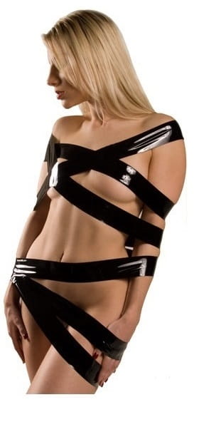 Jeśli szukasz czegoś, co pozwoli na łatwe i szybkie skrępowanie całego ciała, ale nie jesteś przekonany do lin, spróbuj vinylowej taśmy BDSM. Taśma bezklejowa nie posiada kleju, dzięki czemu nie podrażnia skóry i nie jest bolesna przy zakładaniu ani przy ściąganiu. To produkt wszechstronny, który pozwala na skrępowanie całego ciała, ale też wybranych fragmentów. Taśma do krępowania może sprawdzić się na przykład jako zamiennik kajdan, gdy skrępujesz nią nadgarstki lub kostki. Ten produkt spodoba się bardzo miłośnikom bondage oraz zabaw BDSM, ale sprawdzi się również u mniej doświadczonych użytkowników gadżetów erotycznych, ponieważ jest łatwa w obsłudze i funkcjonalna.