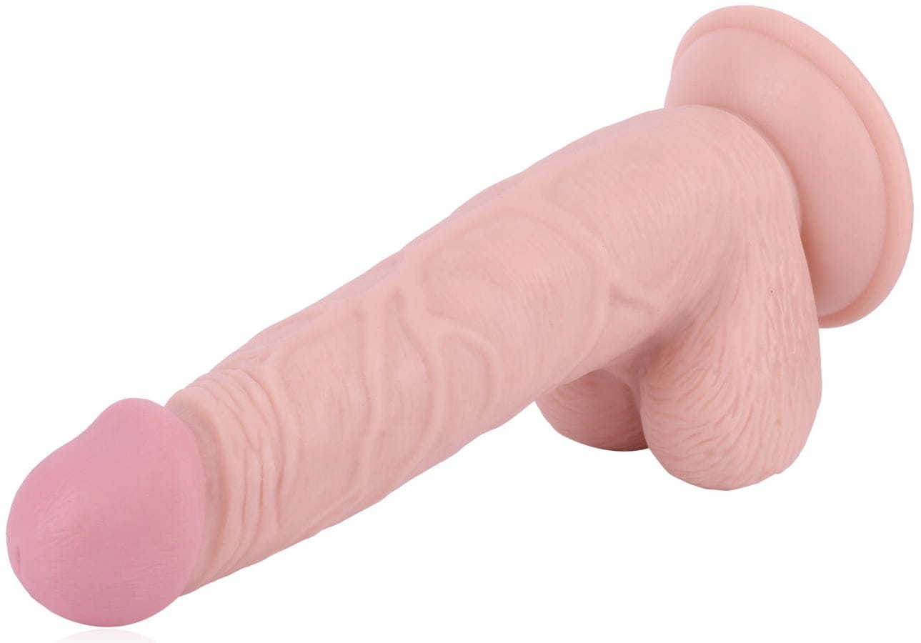 Realistyczny penis na przyssawce - gadżet erotyczny dla Pań, które poszukują czegoś, co pomoże im zaspokoić ich potrzeby seksualne! Długie i grube dildo nie tylko pozwala na głęboką penetrację, ale również wypełnia cipkę i ociera się o wszystkie jej ścianki jednocześnie. Bardzo duży penis wykonany z żelu medycznego jest bezpieczny dla skóry, miły w dotyku i łatwy do utrzymania w higienicznej czystości. Ponadprzeciętny rozmiar zaspokoi nawet wymagające kobiety - aż 23,5 cm długości oraz 5 cm średnicy! Sztuczny penis jest sztywny jak w stanie erekcji, a jednocześnie elastyczny i odgina się pod naciskiem. Doskonale sprawdzi się w łóżku, a także w wannie czy pod prysznicem. Mocna przyssawka pozwala przymocować dildo do gładkiej powierzchni i korzystać z zabawki erotycznej bez użycia rąk. To idealny produkt dla kobiet, które pragną satysfakcji seksualnej! To realistyczne dildo pozwoli każdej kobiecie poczuć przyjemność z penetracji!