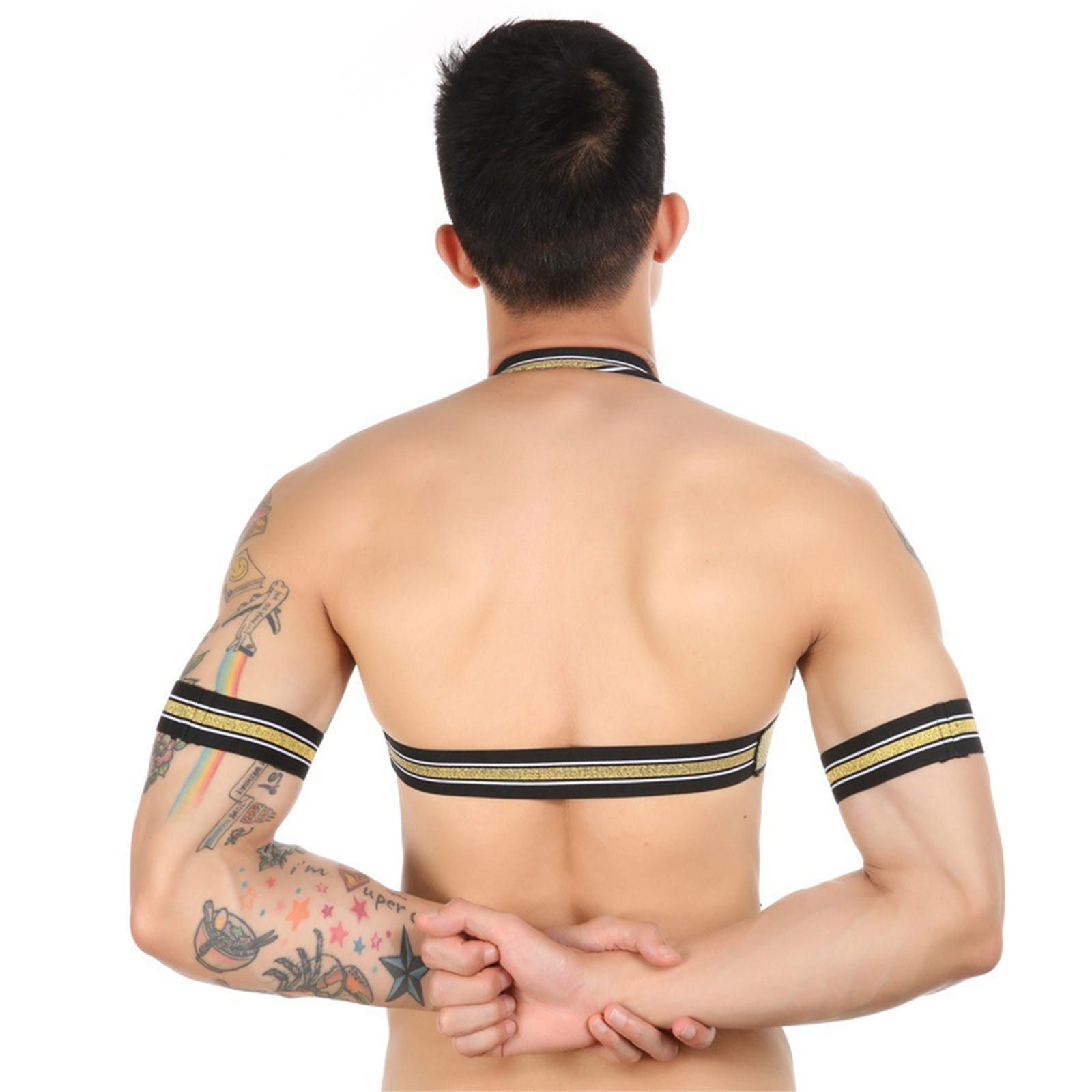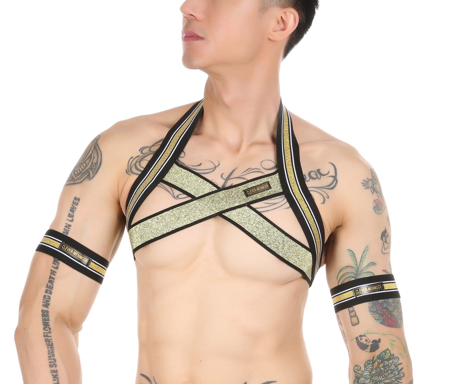 Złoty połysk tej uprzęży przyciąga spojrzenia, nadając Twojemu wyglądowi ekskluzywny akcent. Wykonana z elastycznego materiału, dopasowuje się do kształtu ciała, podkreślając atletyczną sylwetkę i nadając wyjątkowego blasku.